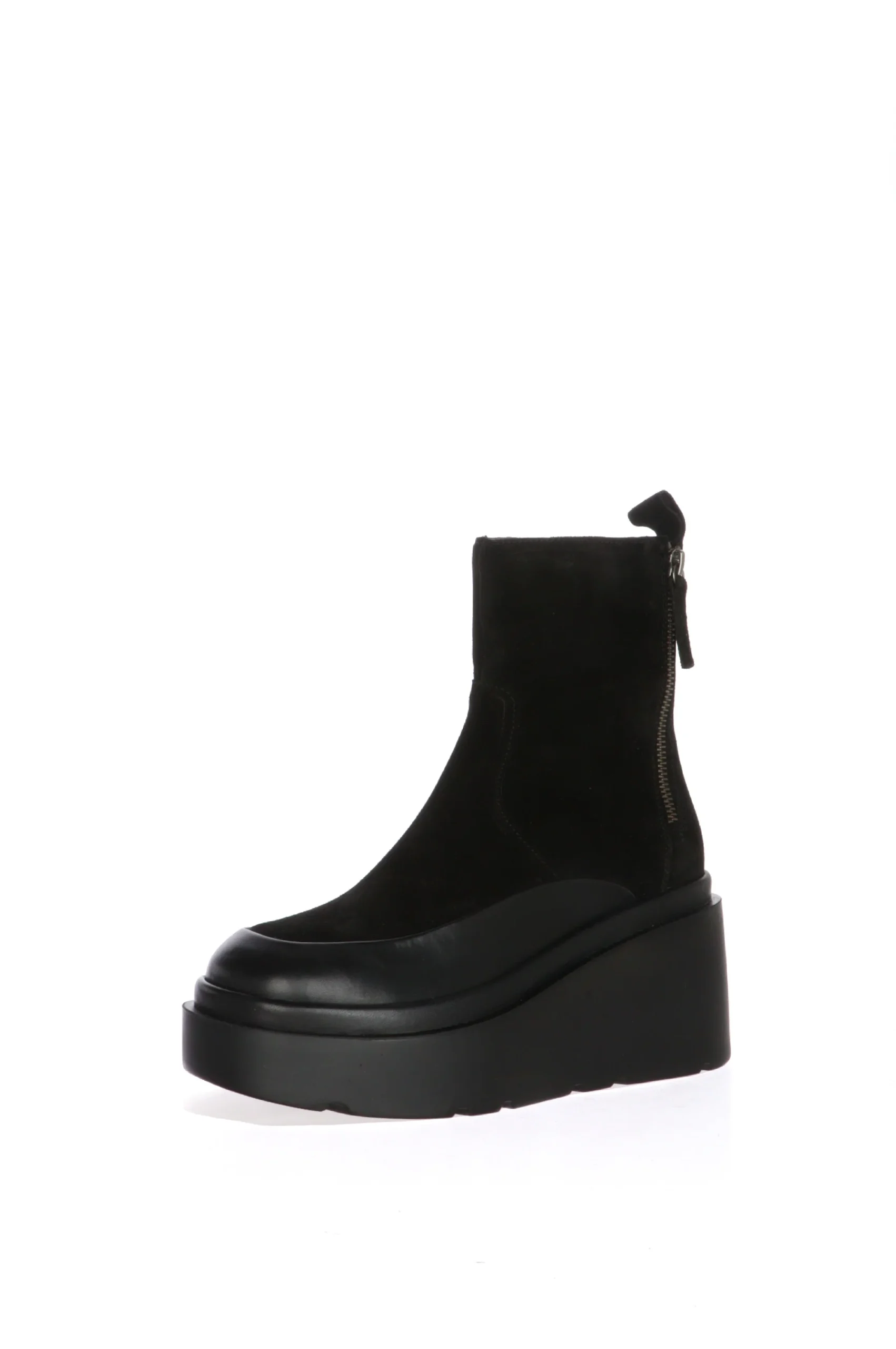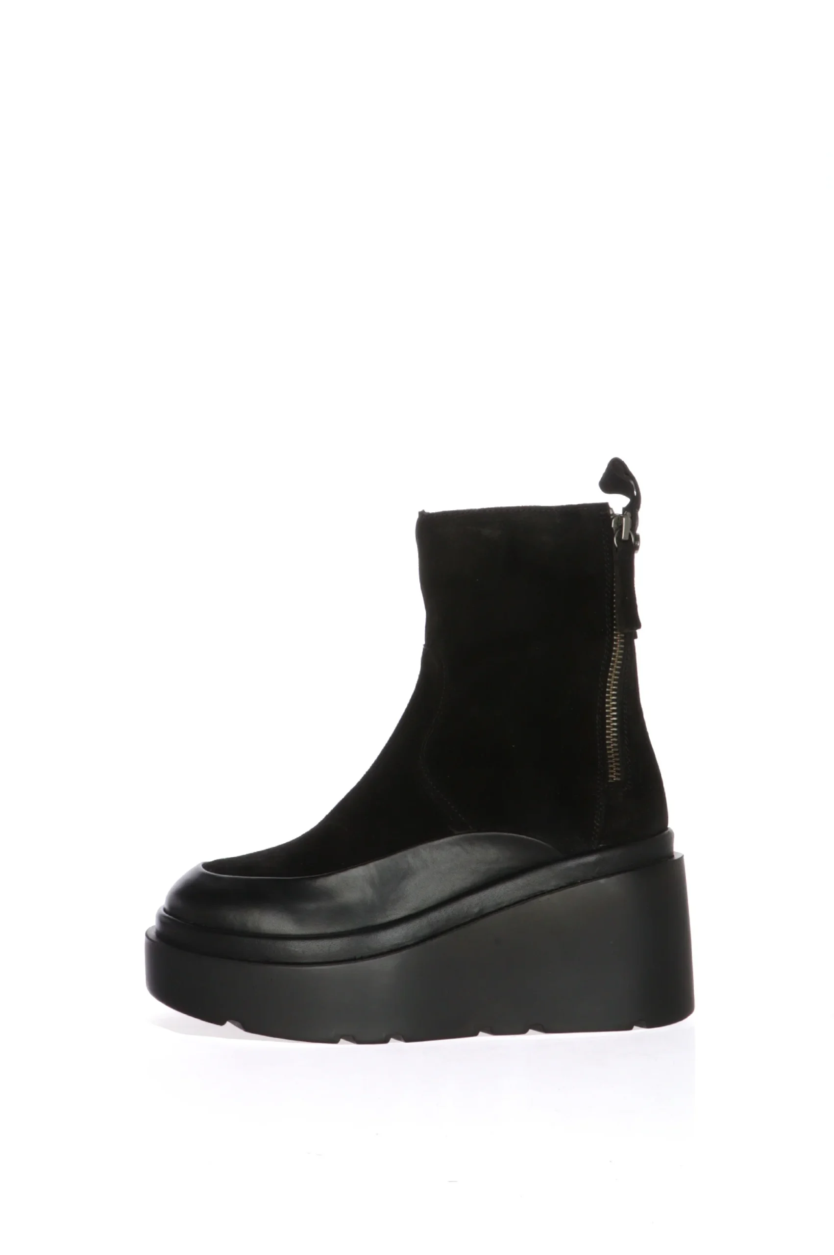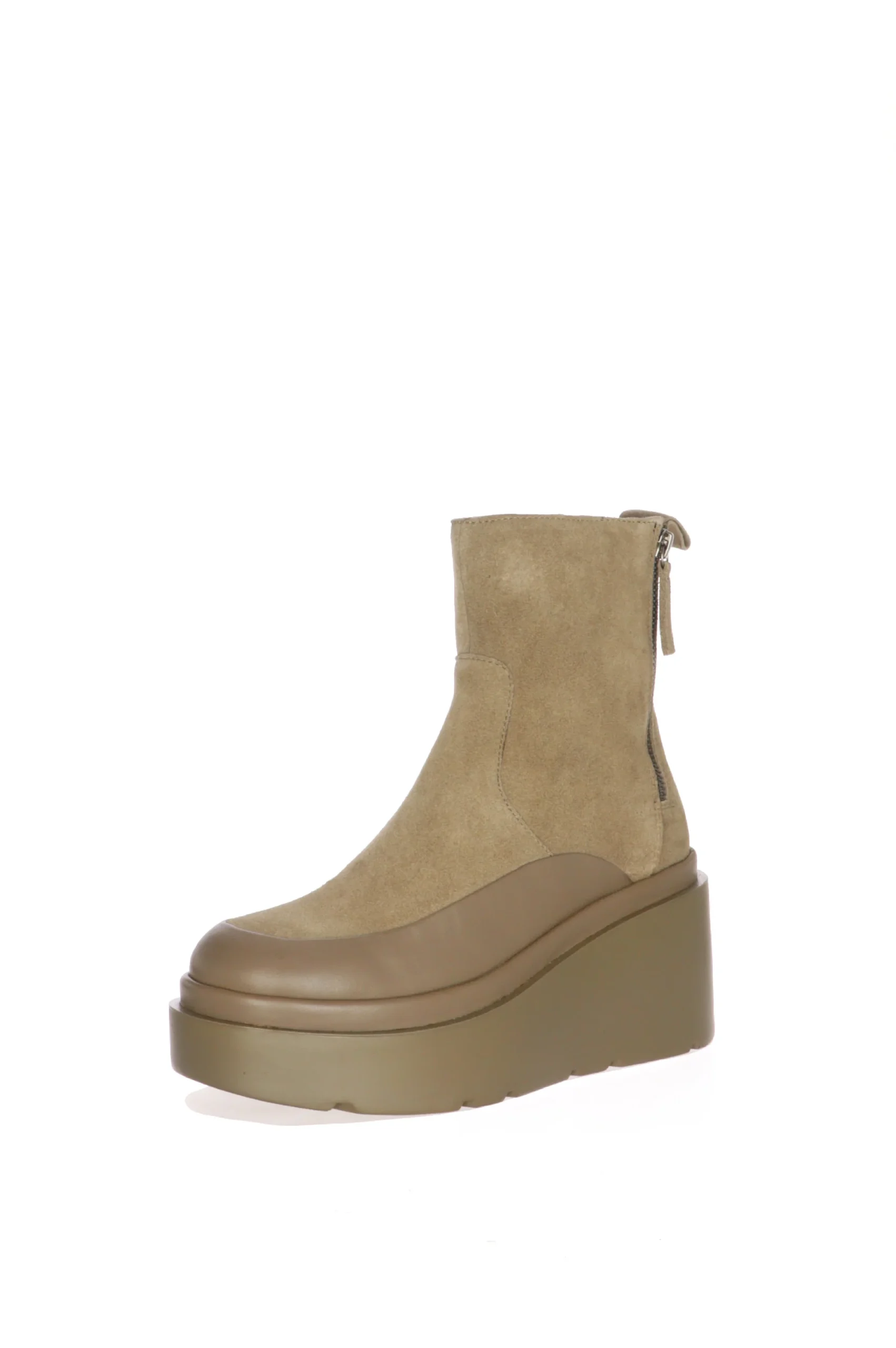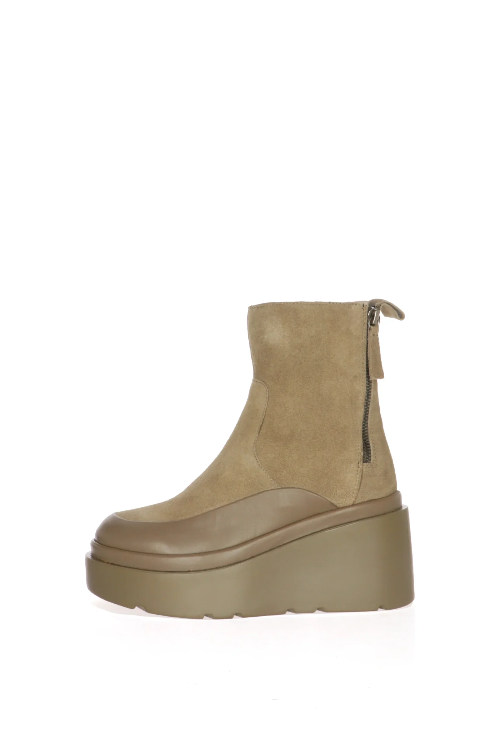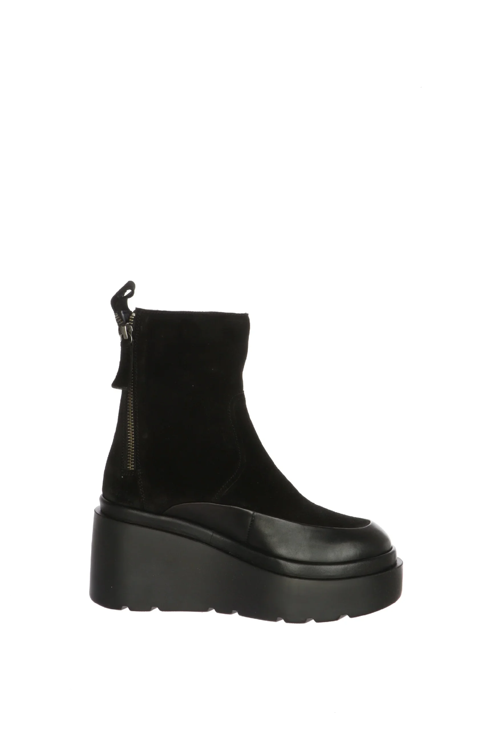 Stivale in vero camoscio con dettagli in pelle e zeppa alta. Tendenza e stile ma anche comfort in uno stivaletto ideale per tutti i giorni ed il tempo libero. Disponibile nei colori nero e fango colore delicato da abbinare con tanti outfit differenti. CafèNoir