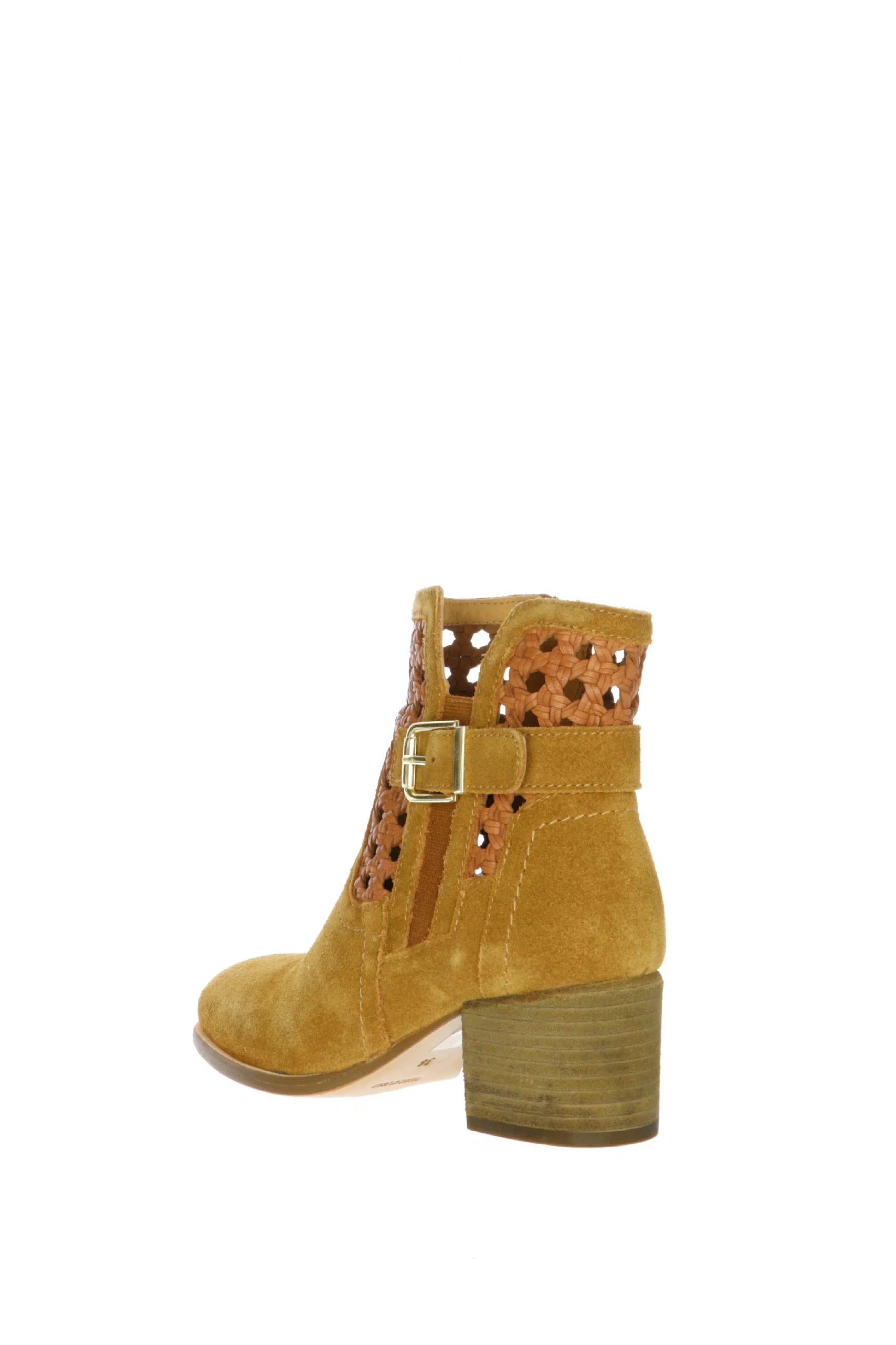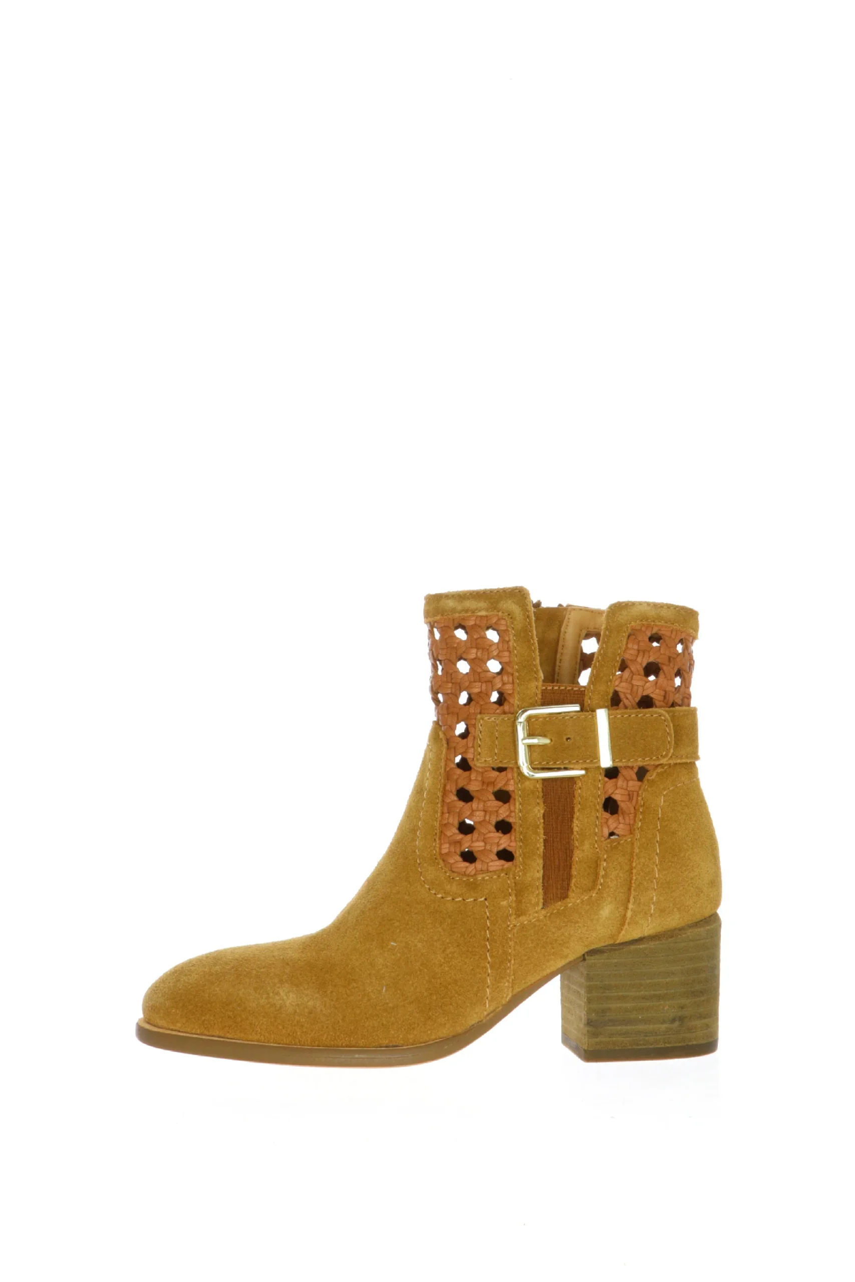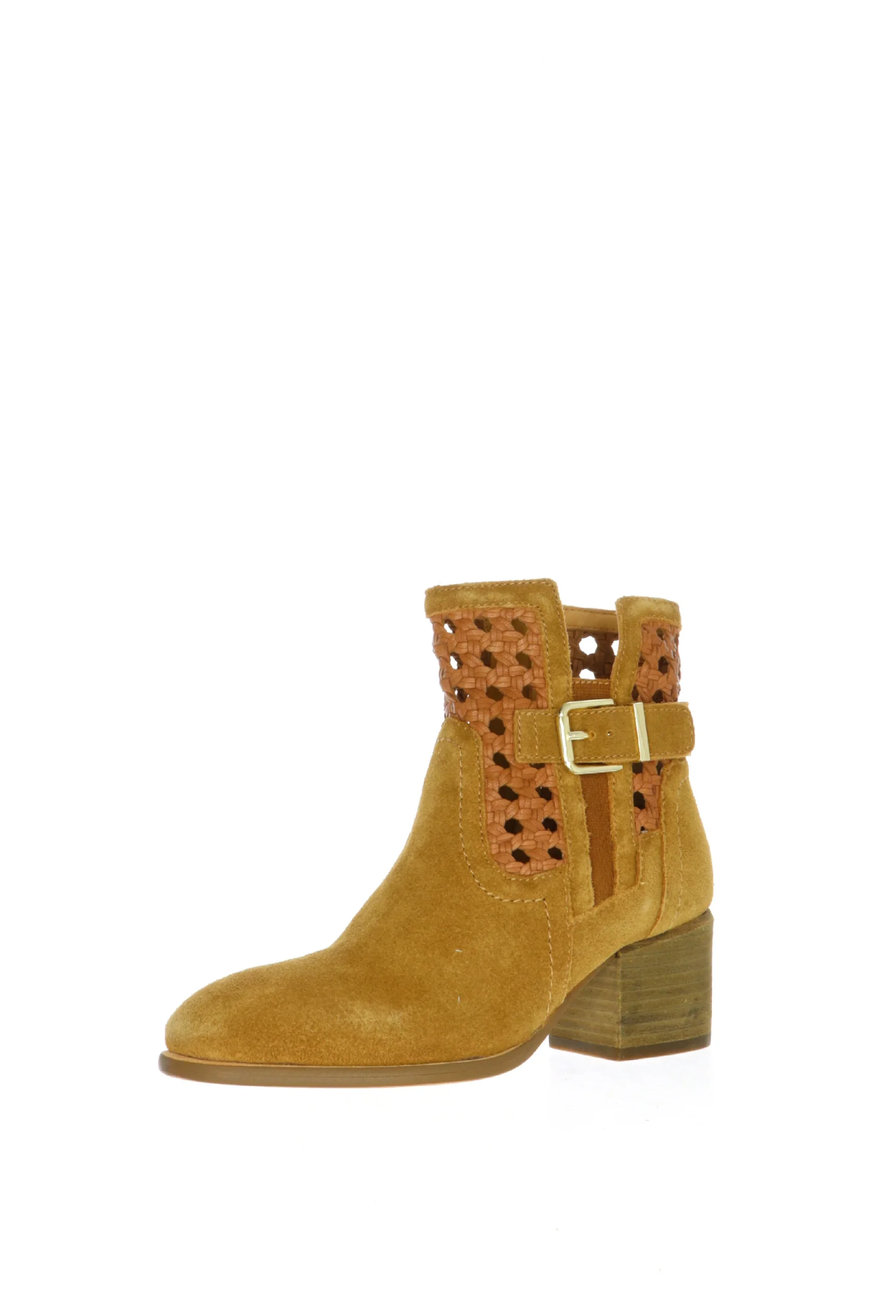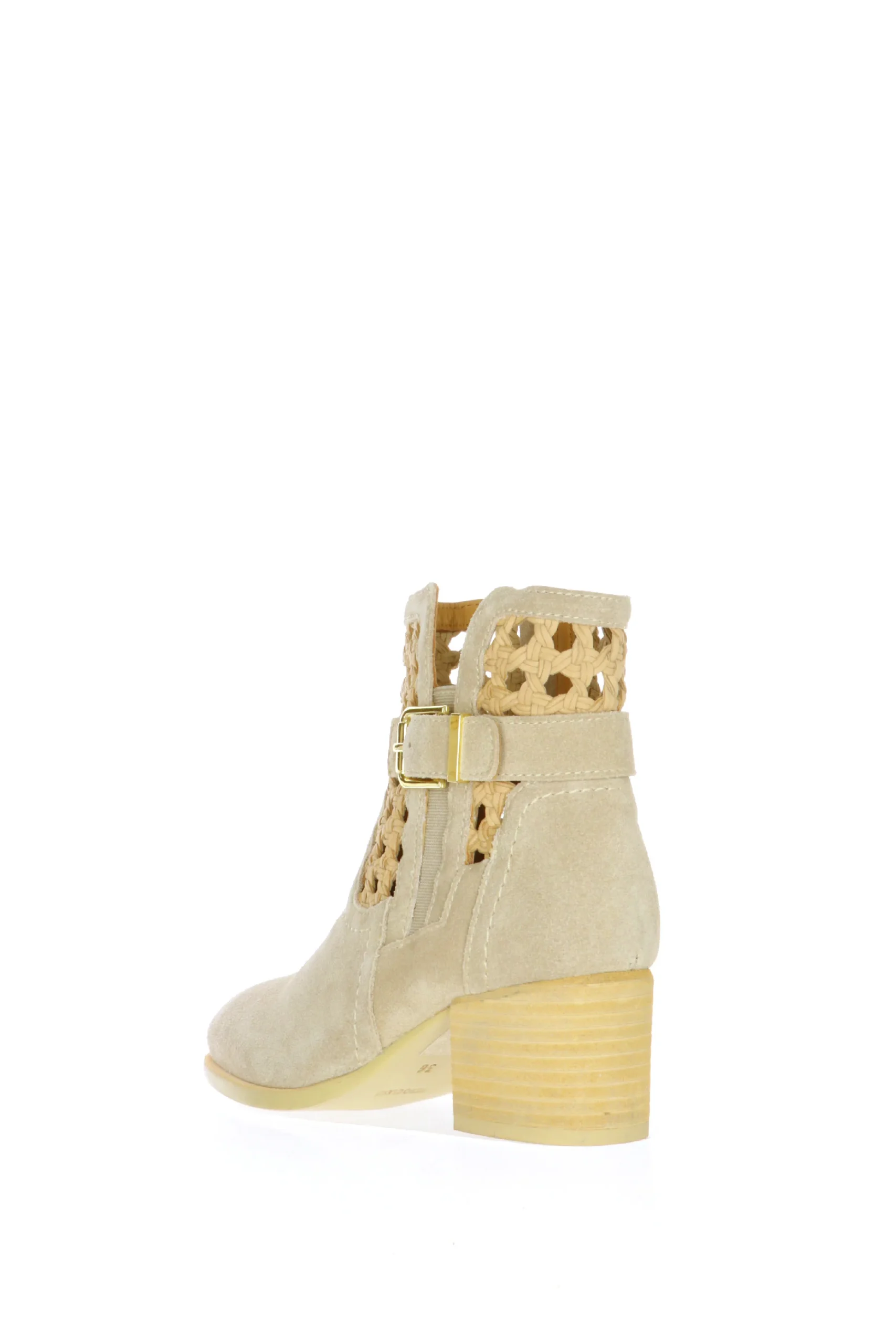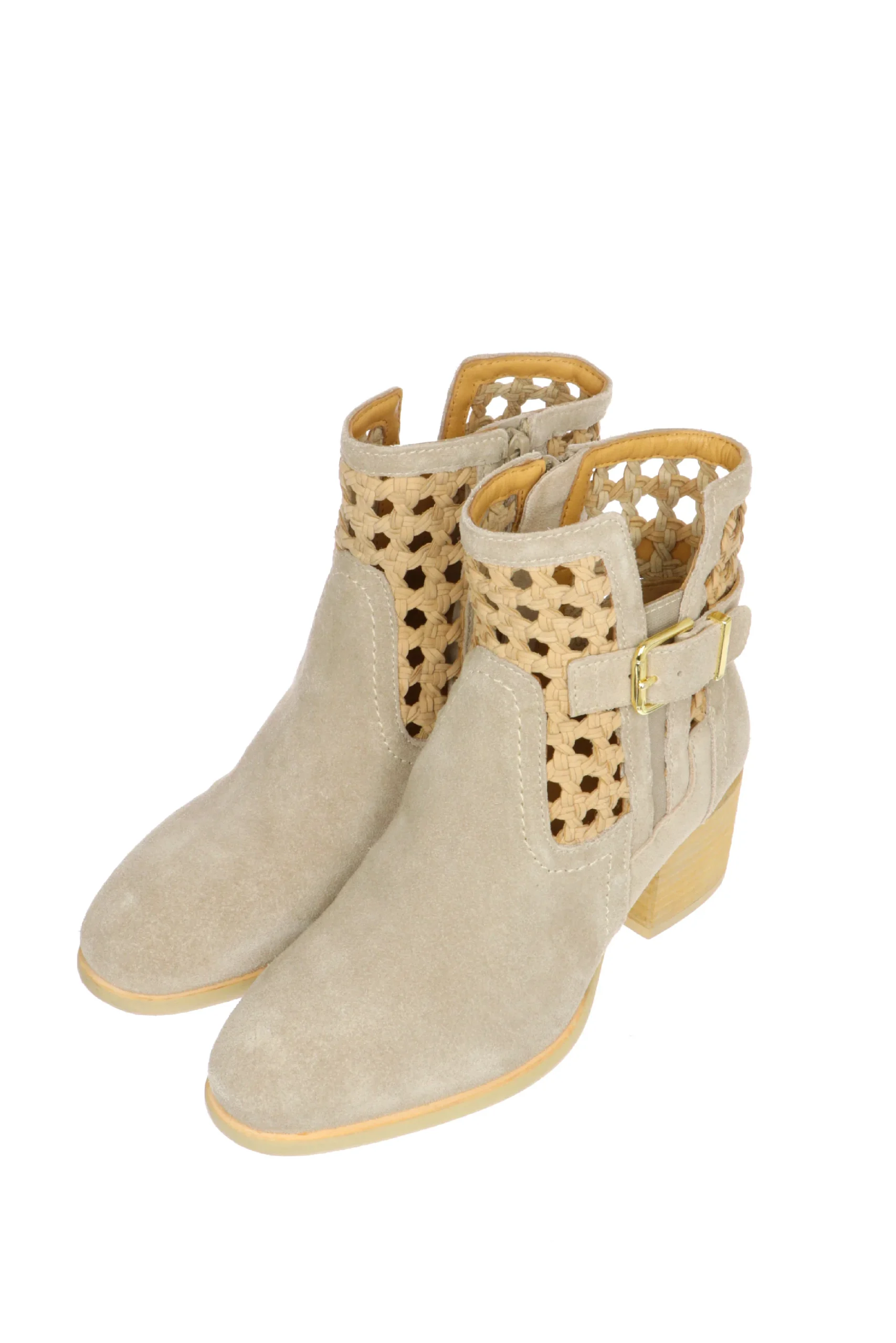 Tronchetto in pelle scamosciata e intreccio con fibbia taupe o cuoio Cafènoir