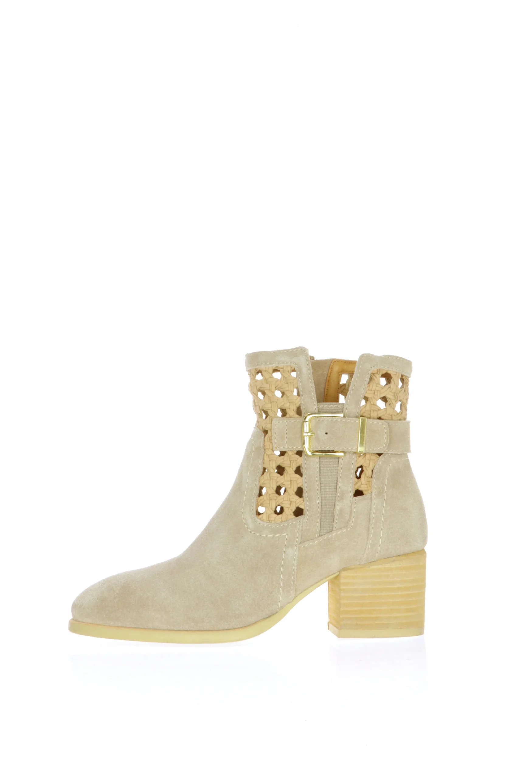 Il tronchetto CafèNoir è un mix perfetto di stile ed eleganza. Realizzato in morbida pelle scamosciata color taupe, questo stivale è un must-have per ogni guardaroba alla moda. Il design intricato del taglio laser aggiunge un tocco di femminilità, mentre la robusta cintura con fibbia assicura una calzata confortevole e sicura. Con un tacco a blocco moderato, offre sia stile che comfort. Perfetto per ogni occasione, dal giorno alla sera.