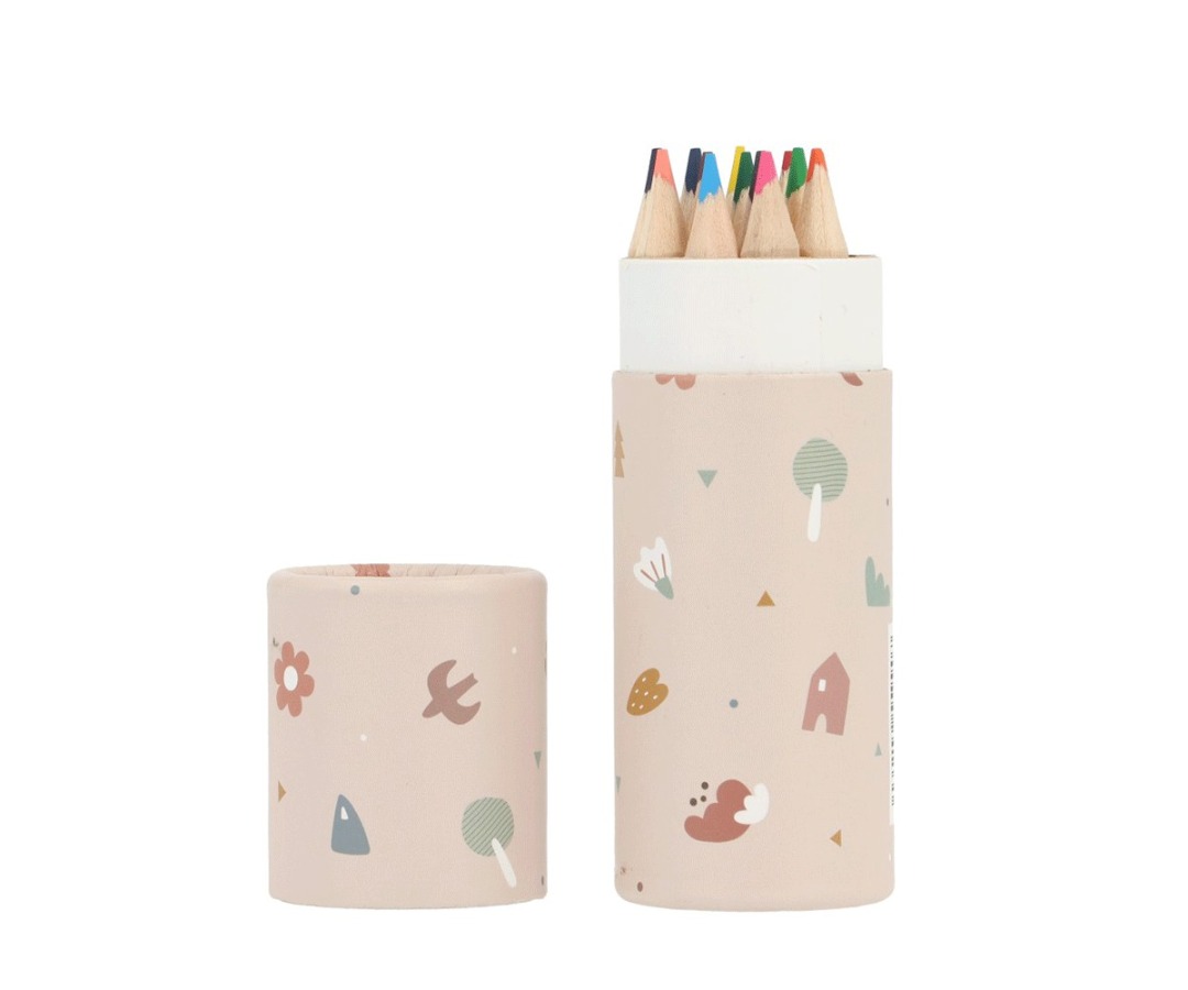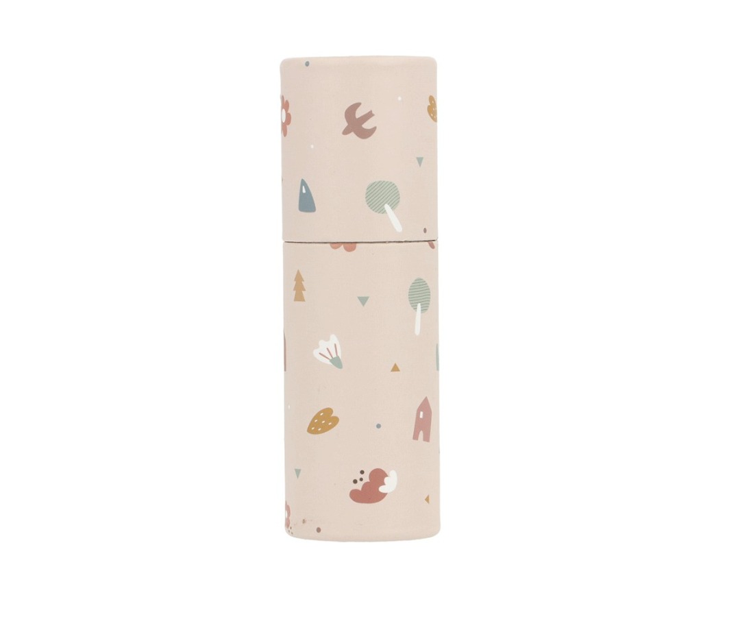 Tubo pastelli in cartone decorato con i disegni della collezione Geometrical Nature di Tutete.