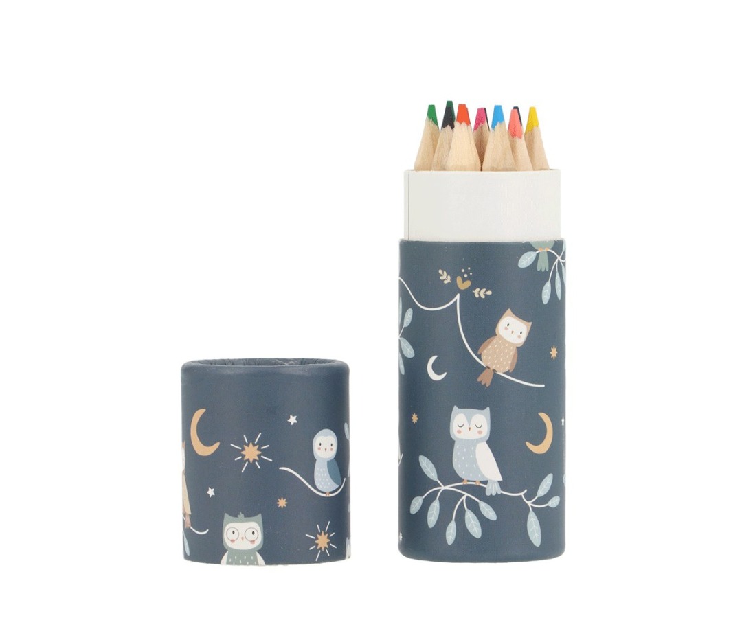Tubo pastelli in cartone decorato con i disegni della collezione Magical Forest di Tutete.