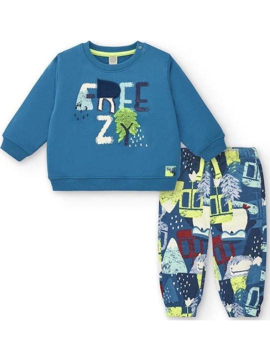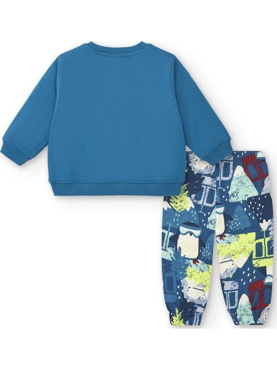 Completo felpa e pantaloni blu per bambino a fantasia.