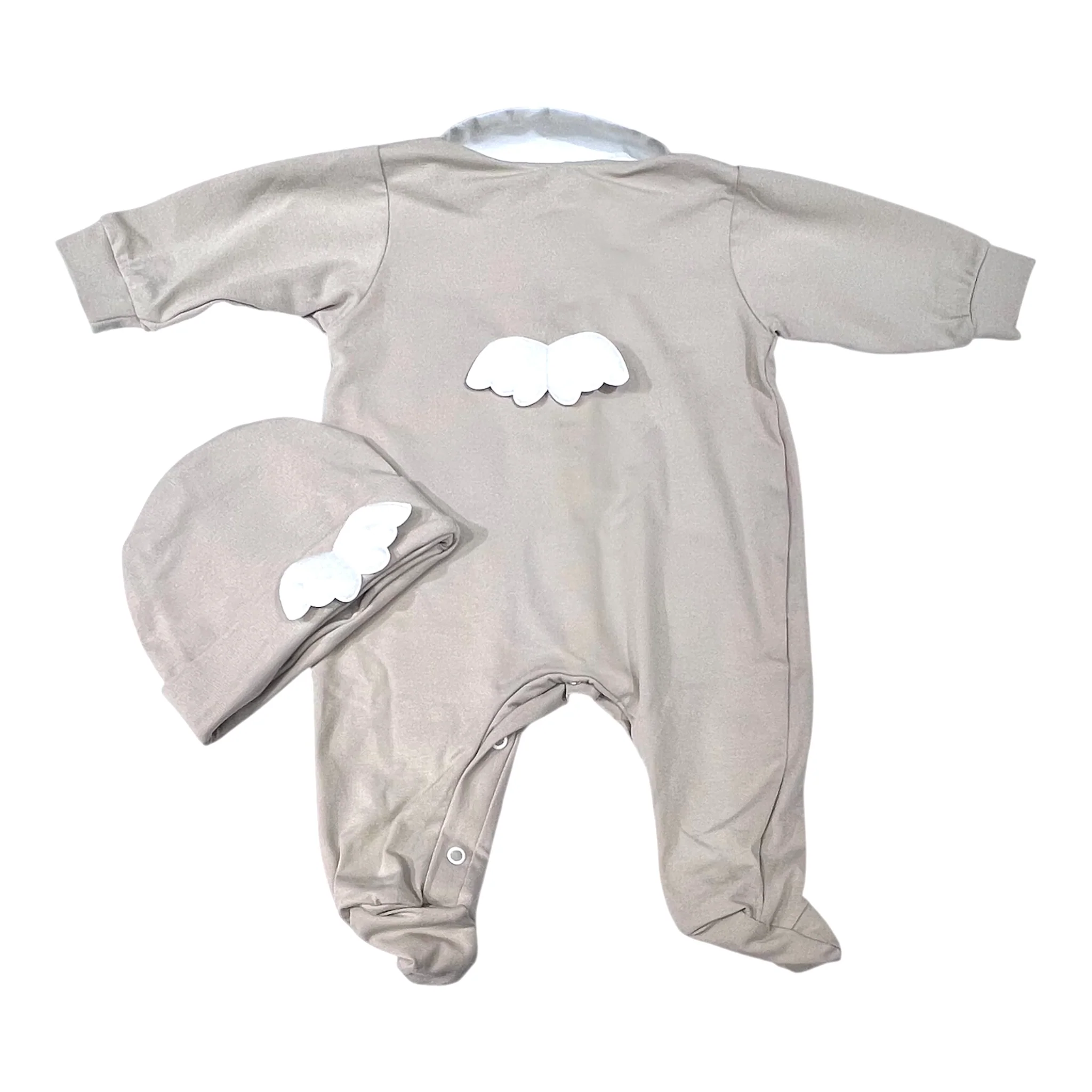Tutina e Cappello in Cotone Bielastico Angel Con Ali Da Corredino Con Colletto In Piquet