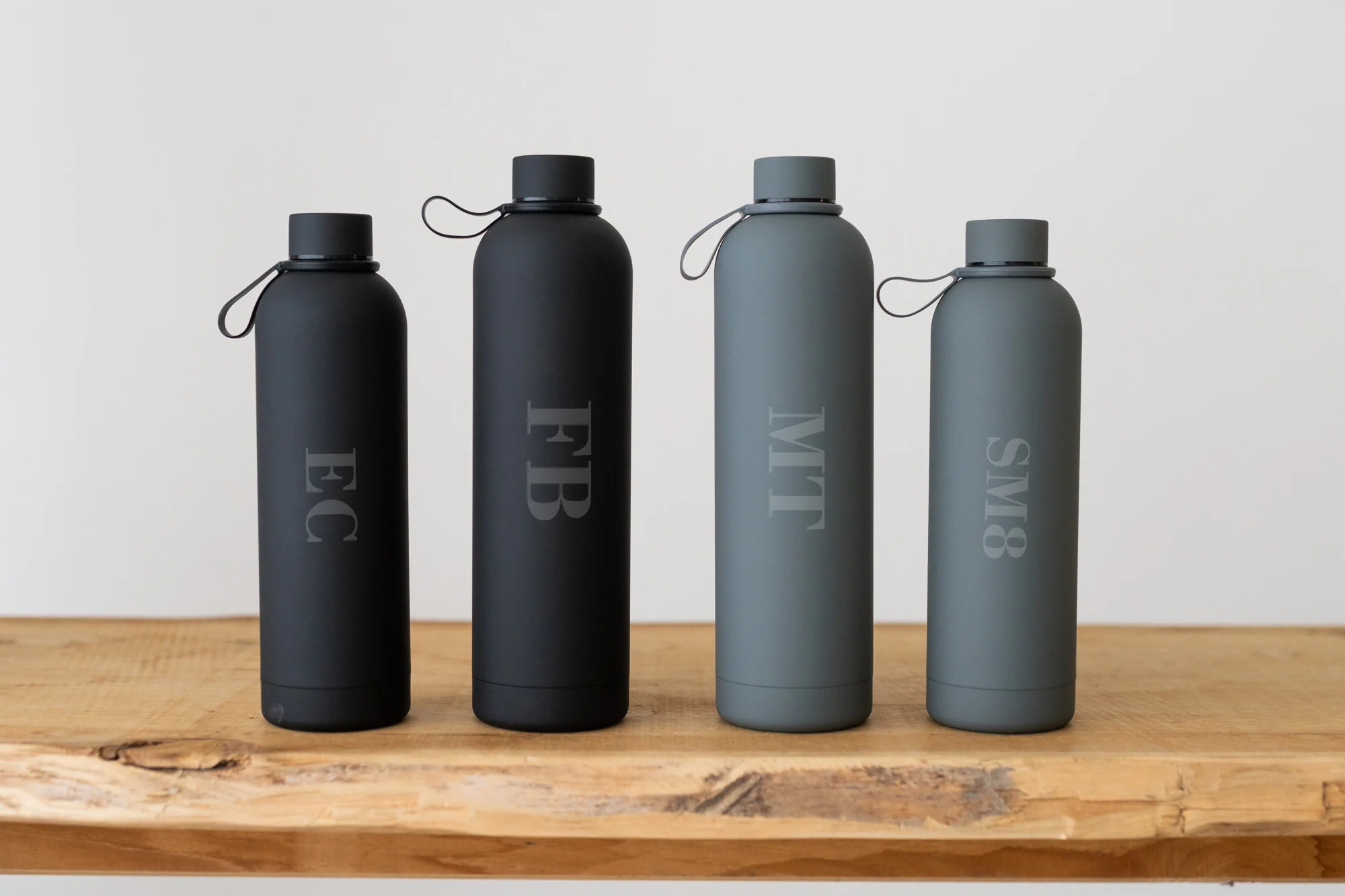 La nostra borraccia in acciaio inox 304 a doppia parete mantiene la temperatura delle bevande per ore ed รจ personalizzabile con nome o iniziali incise al laser.