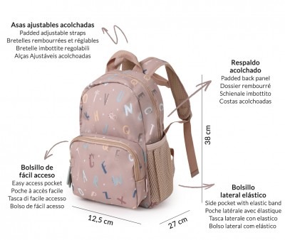 Con un il disegno della collezione Funny Letters Tutete 2025, si può anche personalizzare con il nome ricamato. Più comodo: abbiamo rinforzato l’imbottitura della schiena, della base e delle bretelle. Più resistente e funzionale: la tasca laterale per mettere la borraccia è stata rinforzata con una rete doppia.