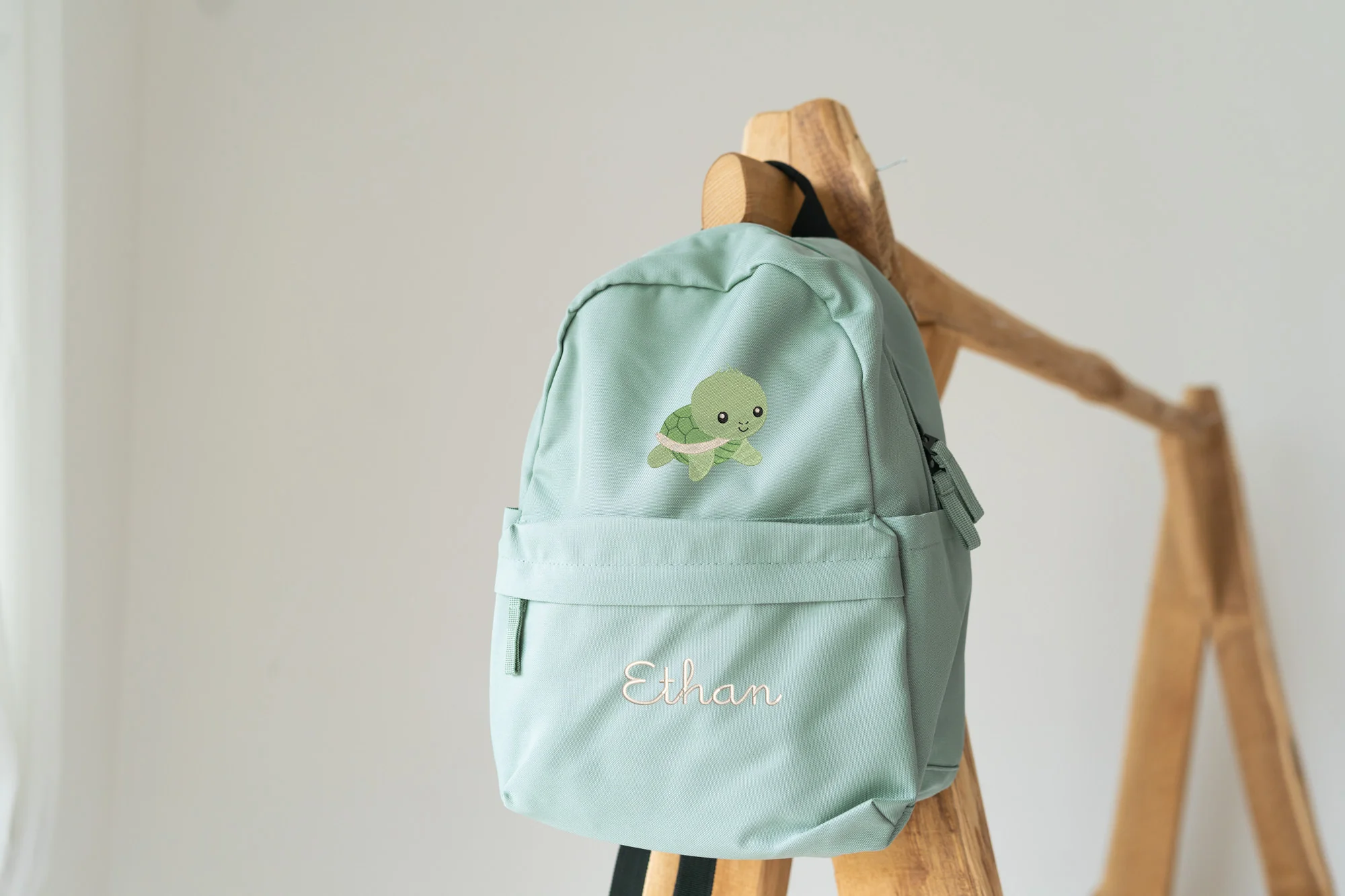 Realizzato in materiale premium 100% riciclato, questo zainetto รจ personalizzato con ricamo su due aree distinte: il nome del bambino e una grafica a scelta, per renderlo davvero unico.
