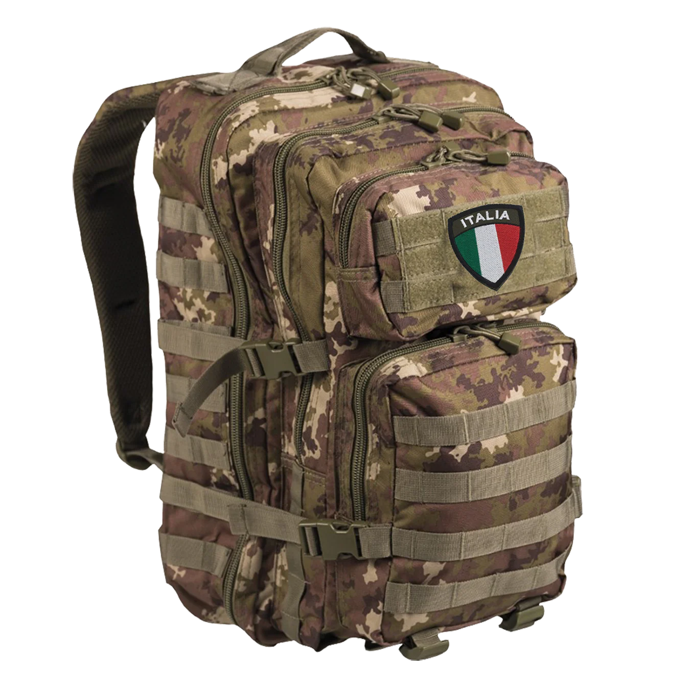 Materiale: 100% poliestere ad alta resistenza, impermeabilizzato mediante spalmatura in PVC LARGE Misure: altezza 51 cm – larghezza 29 cm – Profonditร 28 cmCapacitร : 36 litri circaPeso: 1.5 kg circa ____________________________________________________________________ SMALL Misure: altezza 42 cm – larghezza 20 cm – Profonditร 25 cmCapacitร : 20 litri circaPeso: 1.1 kg circa Produttore: MIL-TEC Nella parte frontale […]